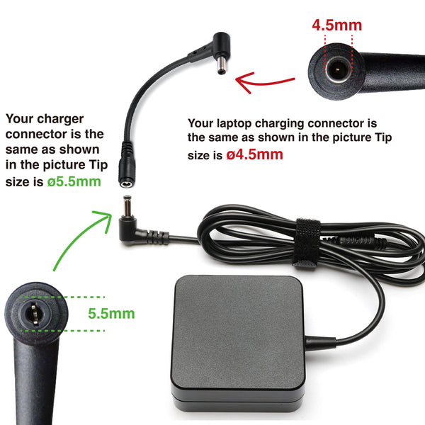 5.5 x 2.5mm to 4.5 X 3.0mm Tip Connector Converter for ASUS ExpertBook Zenbook Pro Duo Flip Asus Zen AiO 19V 3.42A 4.7A 6.32A 65W