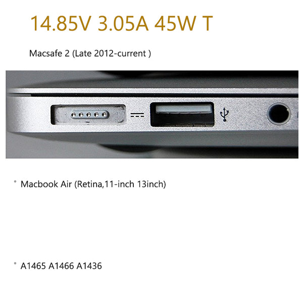 14.85V 3.05A DC Car Charger Travel Adapter Power Supply For Apple MacBook Air 11'' Retina Magsafe 2 45W Magnetic T A1465 A1466 A1436