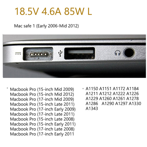 85W 18.5V 4.6A Magsafe L Car Charger Adapter Power Supply For Apple Macbook Pro 15" 17'' inch A1150 A1151 A1172 A1184 A1211 A1212 A1222 A1226 A1229 A1260 A1261 A1278 A1286 A1290 A1297 A1330 A1343