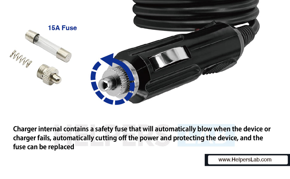 - 【15A Fuse】Charger internal contains a safety fuse that will automatically blow when the device or charger fails, automatically cutting off the power and protecting the device, and the fuse can be replaced